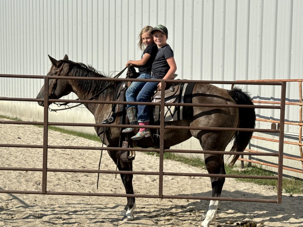 He and his family, including wife Tana, son Sam and his wife Kendra, and daughter Sarah, along with Sarah’s son Kale, also run a commercial herd of cattle on the ranch. It used to be registered Angus, but to concentrate on horses, the registered herd ended.