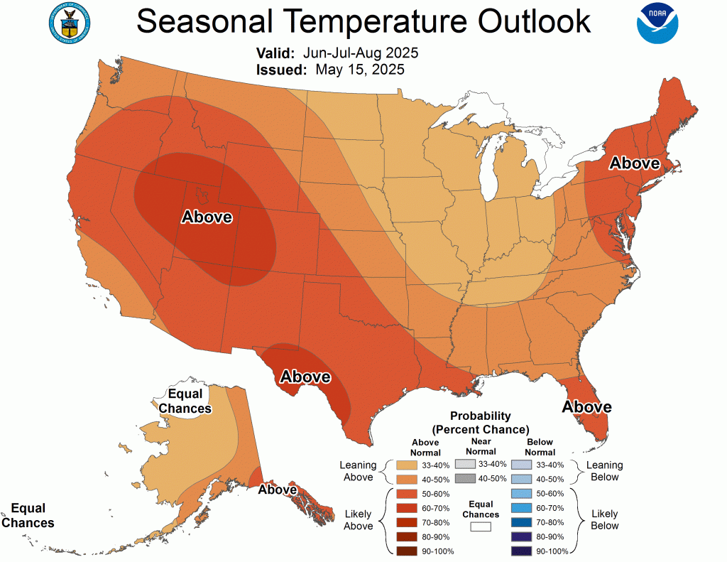 The equatorial Pacific Ocean is not expected to play a major role in shaping U.S. summer weather patterns, with ENSO-neutral conditions forecast (neither El Nino nor La Nina) through the end of the 2025 growing season, Rippey said.