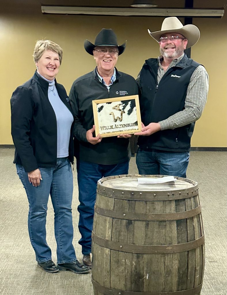 President Paul Hill of Nunn presented awards. Hill noted the long-term efforts of outgoing director Willie Altenburg of Fort Collins. Altenburg, who was term limited in his most recent stint on the board, has served on CSA board leadership for 26 years. “Willie continues to dream up ideas to make strides for CSA and our part of National Western, Hill said. “He pushes the rest of us to be better and think harder. To thank him for his service, we present this award, noting his exceptional role as Simmental’s Leader, Promoter and Innovator.”