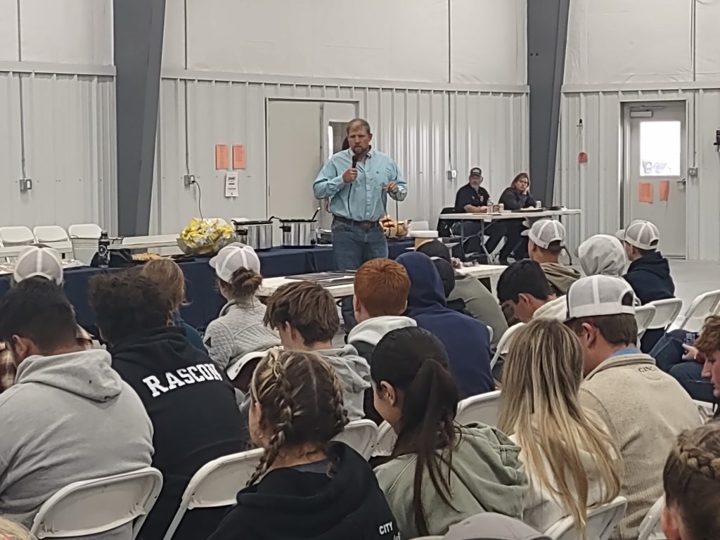 Following lunch, guest speaker and local rancher Levi Kokes gave an interesting presentation about his experience using virtual fencing as an important grazing management tool on his ranch. Don Thorn, Colorado State University College of Agriculture, talked about the importance of ag education through FFA involvement. The students gained special knowledge about proper rangeland management practices to sustain ecosystem goods and services provided by healthy rangelands.