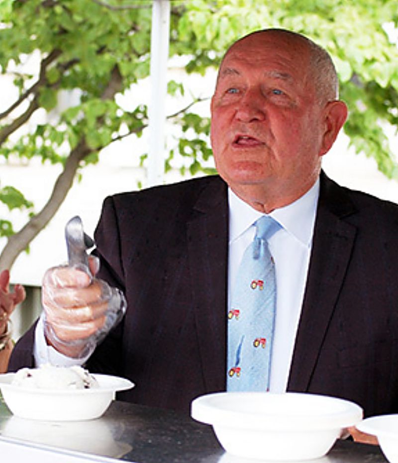 Perdue led the assembled in chanting “I scream, you scream, we all scream for ice cream” before taking a turn at scooping and serving America’s favorite dessert.