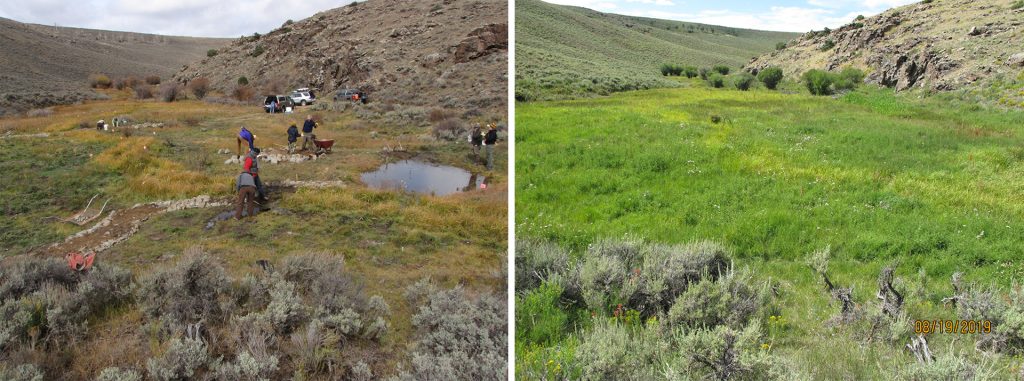 Results published in the Journal of Restoration Ecology show that low-tech restoration structures were effective at rewetting intermittent streams and wet meadows within the arid landscape, even though six of the nine monitored years were considered drought years. Non-native invasive weeds declined, while forbs and grasses important to sage-grouse and livestock operations increased.