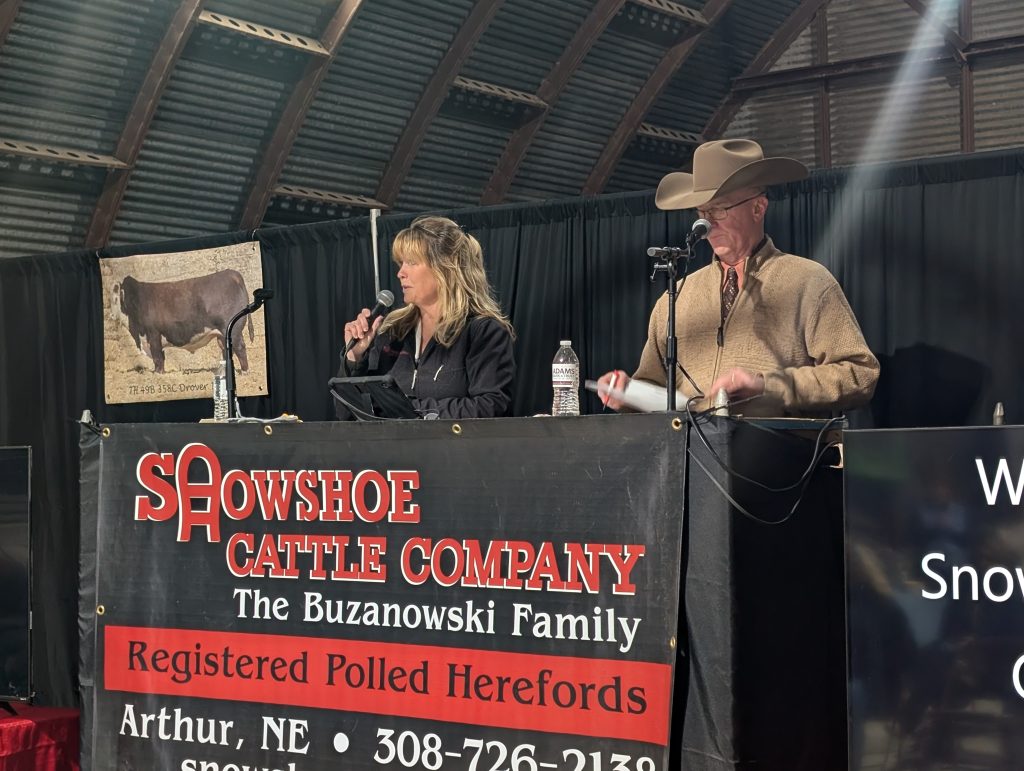Lot 86N – $11,000. Snowshoe 901 Bolder J06 86N, a 3/2/25 son of CSC 701 Bolder 901 out of a Snowshoe 31U TUFF 31S 42Z cow sold to Mike Augustyn of Arcadia, Neb.