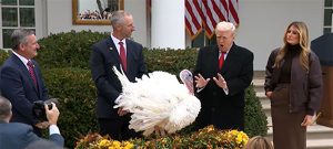 Trump asked if Gobble was “violent,” but was told the turkey was not. The president moved near the bird and issued the pardon as the first lady stood by his side.