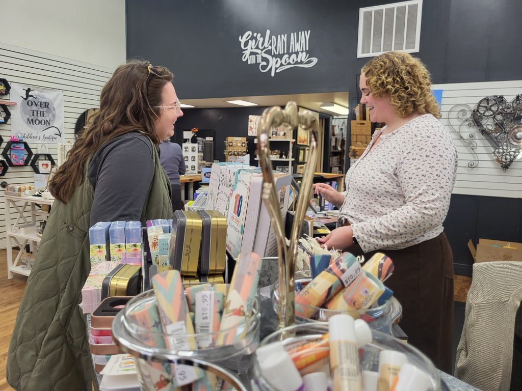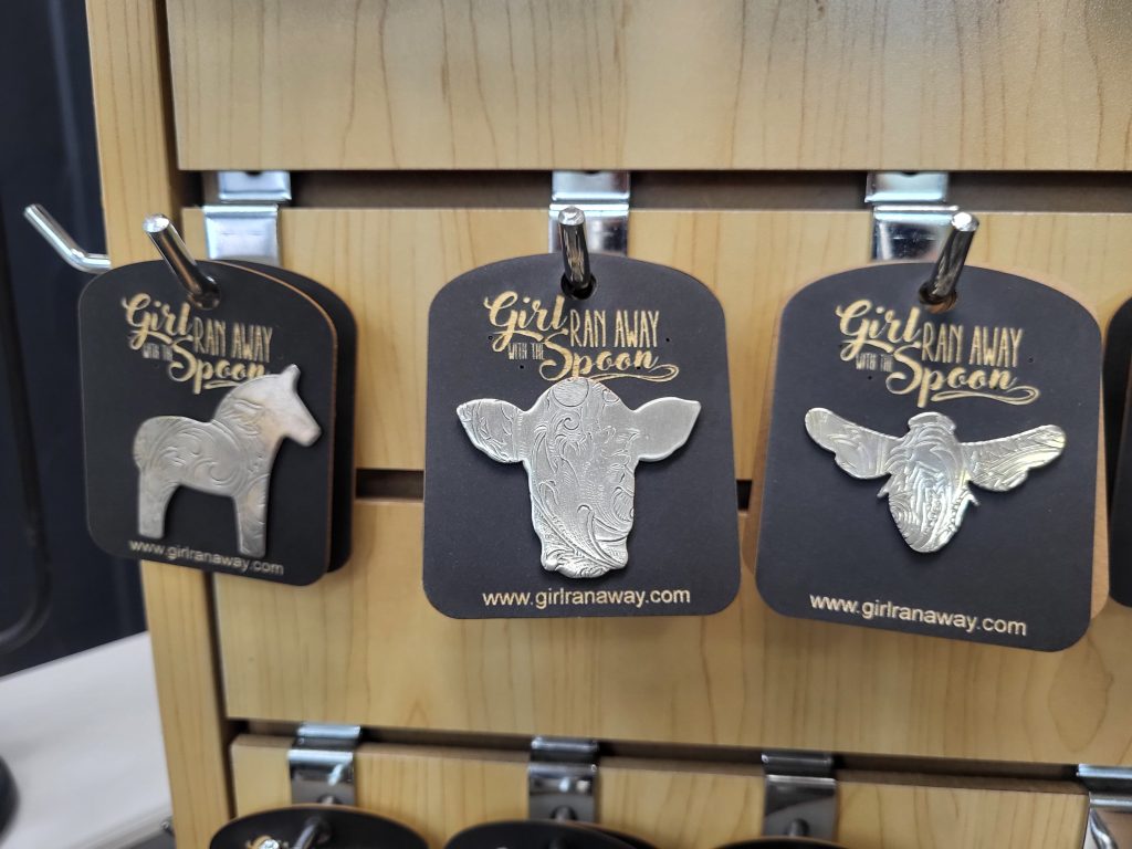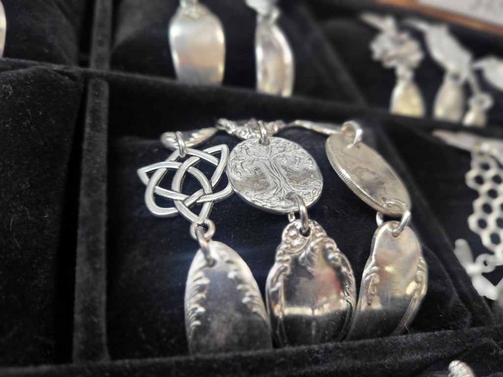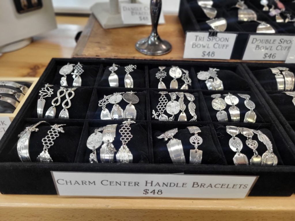 The Spoon shop operates across three platforms – the brick-and-mortar store, online sales, and wholesale distribution. They sell wholesale spoon jewelry in almost all 50 states. Blaquiere said that aspect of the business has grown through the involvement of the online platform Faire. “It’s kind of like an Etsy for small business owners to purchase from other small makers at wholesale.” The platform has allowed them to bring in specialty items in smaller quantities, mostly from made-in-the-USA vendors, with a shorter lead time. In turn, they sell their jewelry through the site and have gained a multi-state following. “Customers from states away will tell us they planned their trip around coming to our shop,” she said. Despite their online and wholesale success, Blaquiere said the easy majority of their sales come in person from the retail store – a surprising and refreshing note in a world of digital clicks and package delivery.